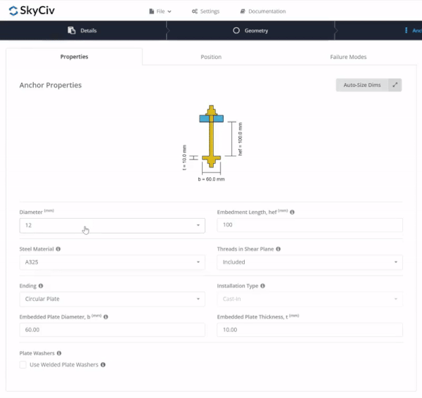 To visualize this behavior during design, tools such as the SkyCiv Base Plate Design Software display projected failure areas and automatically determine whether anchors are evaluated individually or as a group based on geometry.