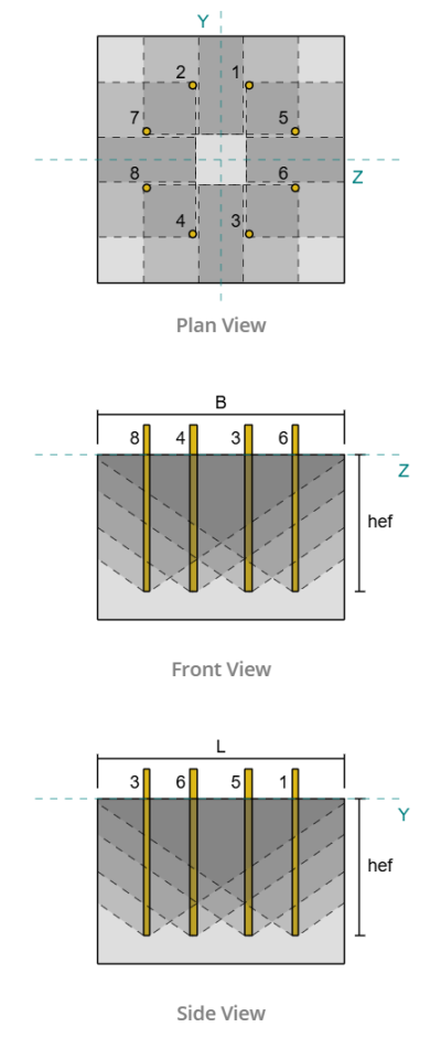 Whether a failure is evaluated as a single anchor failure or an anchor group failure depends primarily on the overlap of projected failure surfaces. This overlap is typically controlled by anchor spacing, embedment depth, and edge distance.