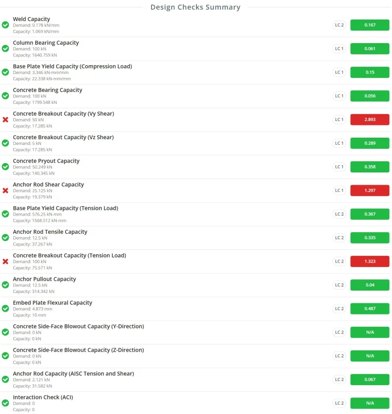 If you want to see how these checks are applied step by step in a design workflow, you may also refer to the SkyCiv Base Plate Design Software, which reports all ACI anchor checks with complete calculations.