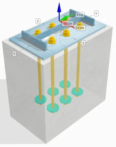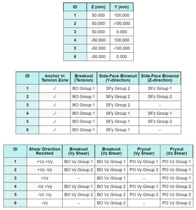 Following the same approach as in Check #7, the total tension demand of the anchor group for the anchors closest to the Z-direction edge is: