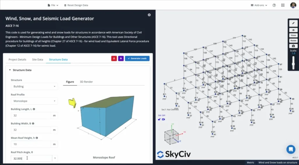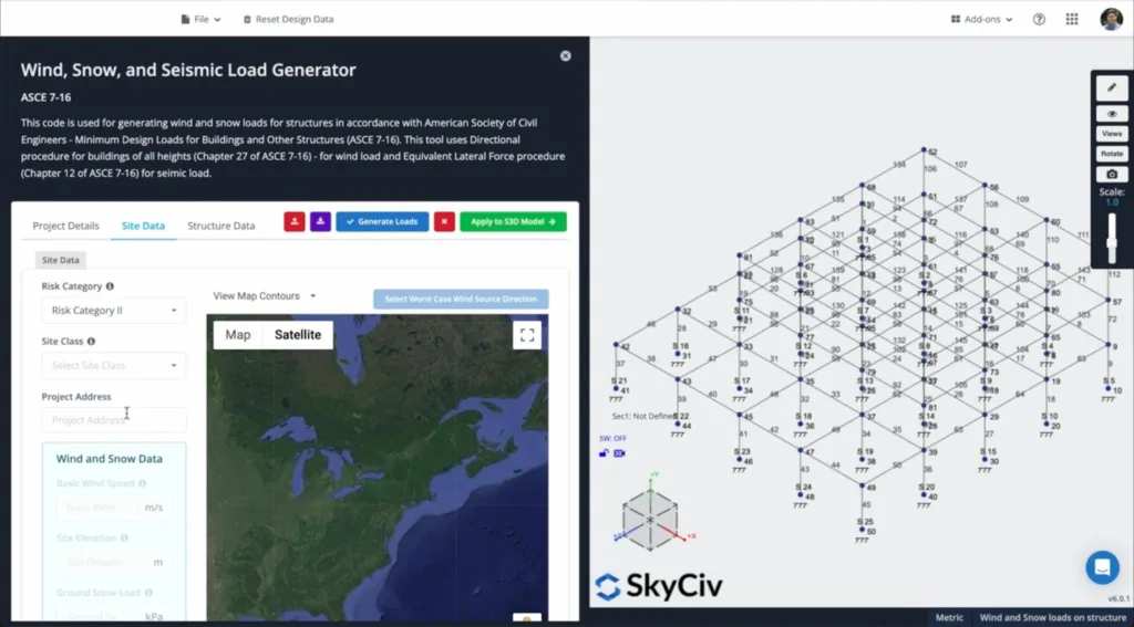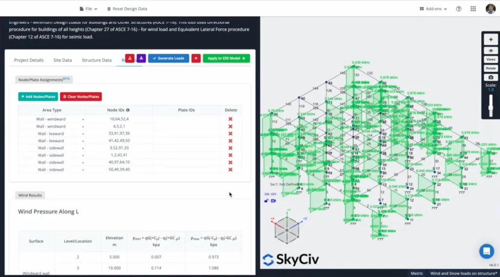 The SkyCiv Load Generator offers wind, snow and seismic load generation