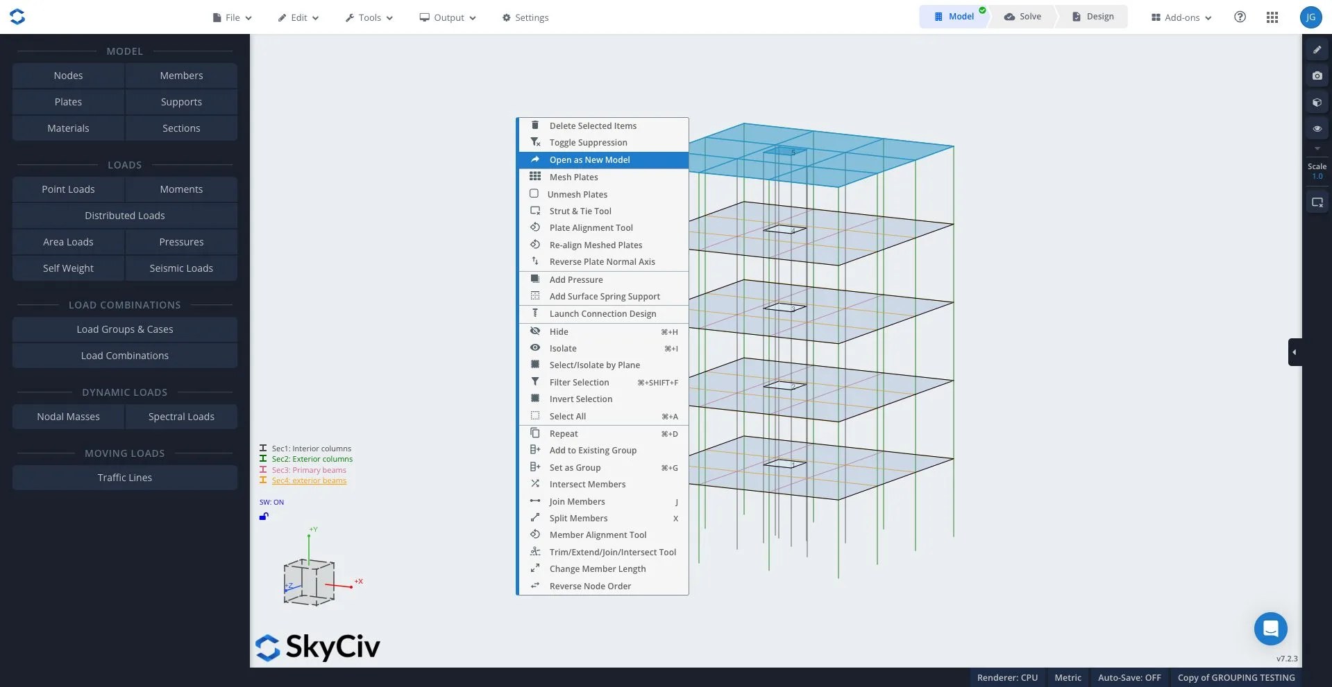 The specified region can be selected directly by holding Cmd (Mac) or Ctrl (windows) and dragging across the desired plate element. Once highlighted (desired region will appear blue) right click and select “Open as New Model” to extract level into seperate model.