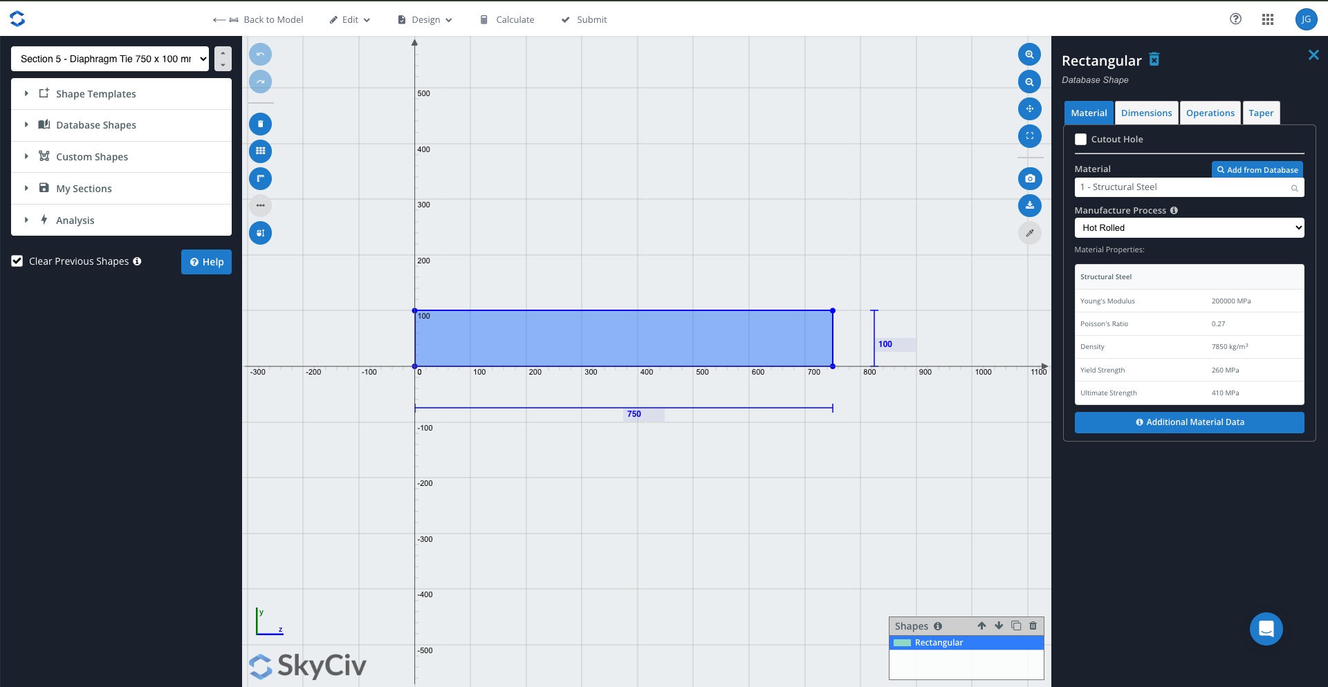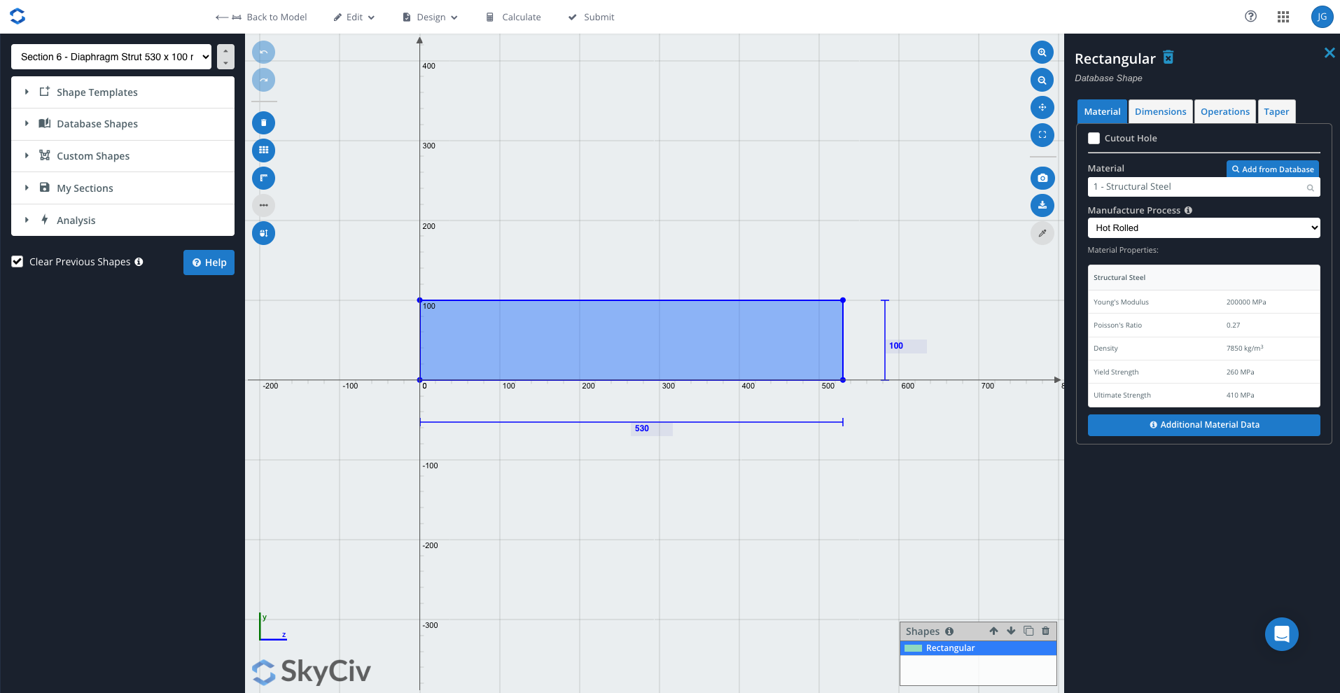These are used to generate equivalent auto diaphragm grillages, this is visually displayed by SkyCivs Section Builder: