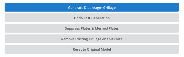 This generates your auto-diaphragm grillage based on inputs and visually displays this on model. This tool supresses your plate and converts it into an equivilant grillage by: