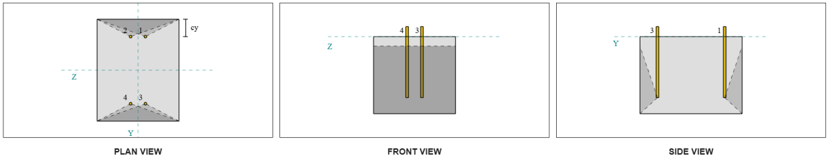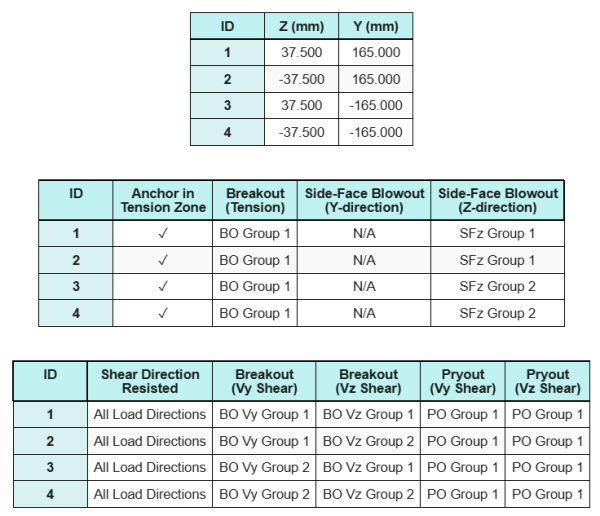 Usando essas distâncias de borda, nós calculamos o capacidade do grupo âncora conforme CSA A23.3:19 Clause D.6.4.