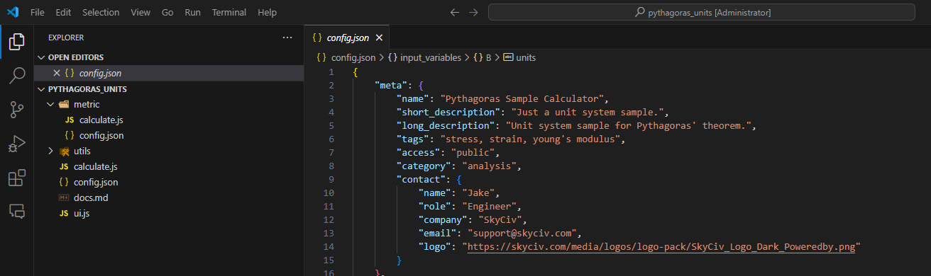 To enable manual unit conversion, do not include the default_unit_system key in your config.json. Instead, create a folder for the alternate unit system (either metric or imperial), with its own calculate.js and config.json files, as shown in the screenshot below: